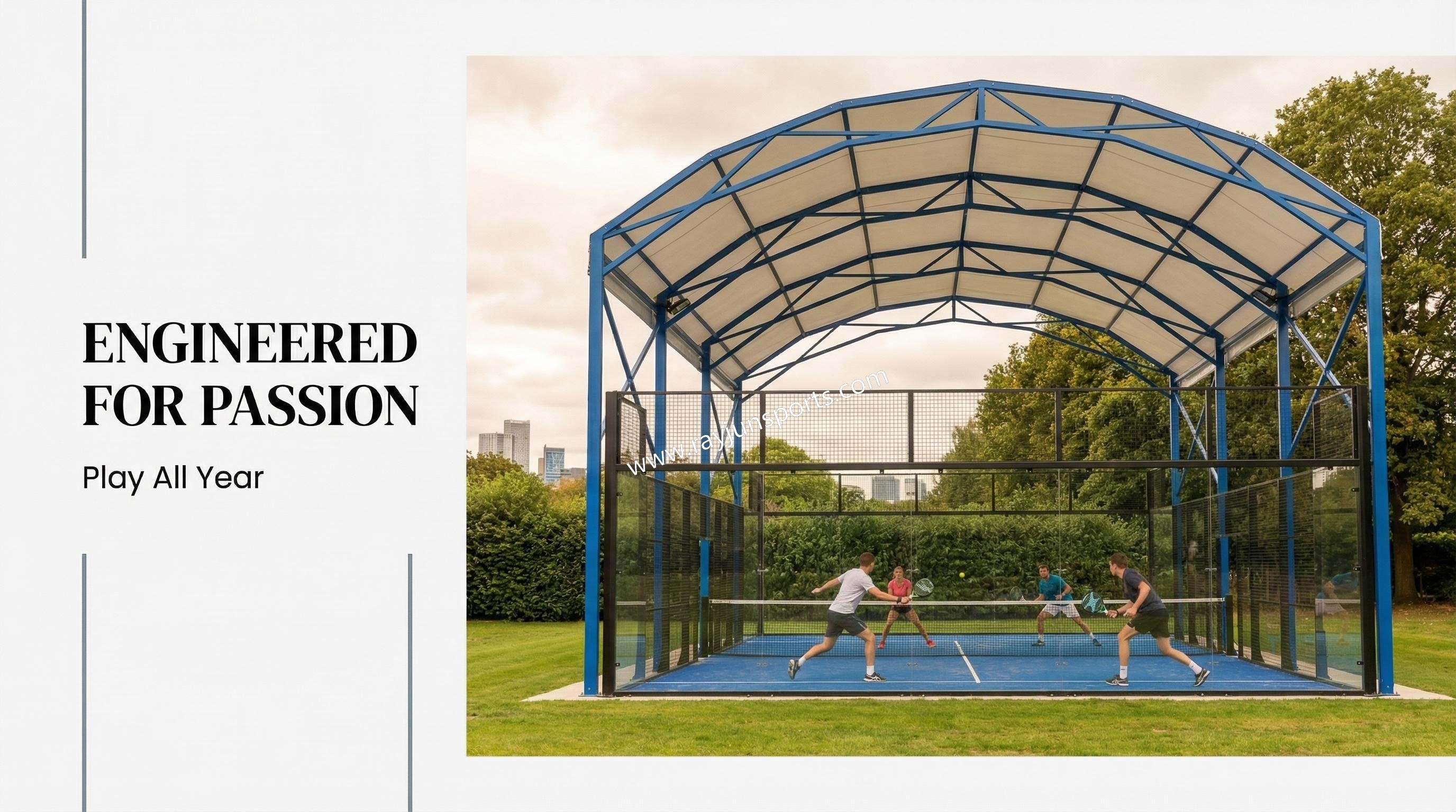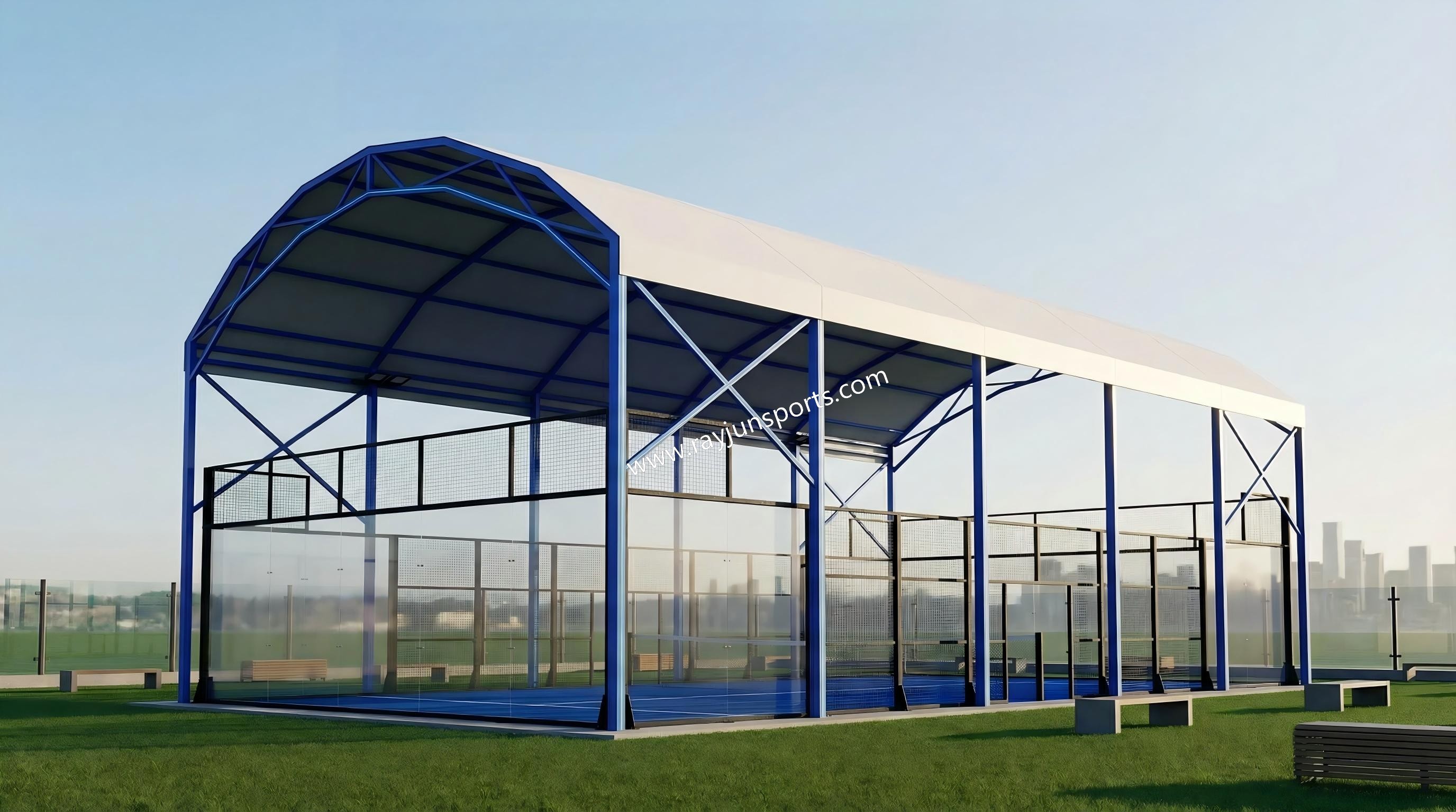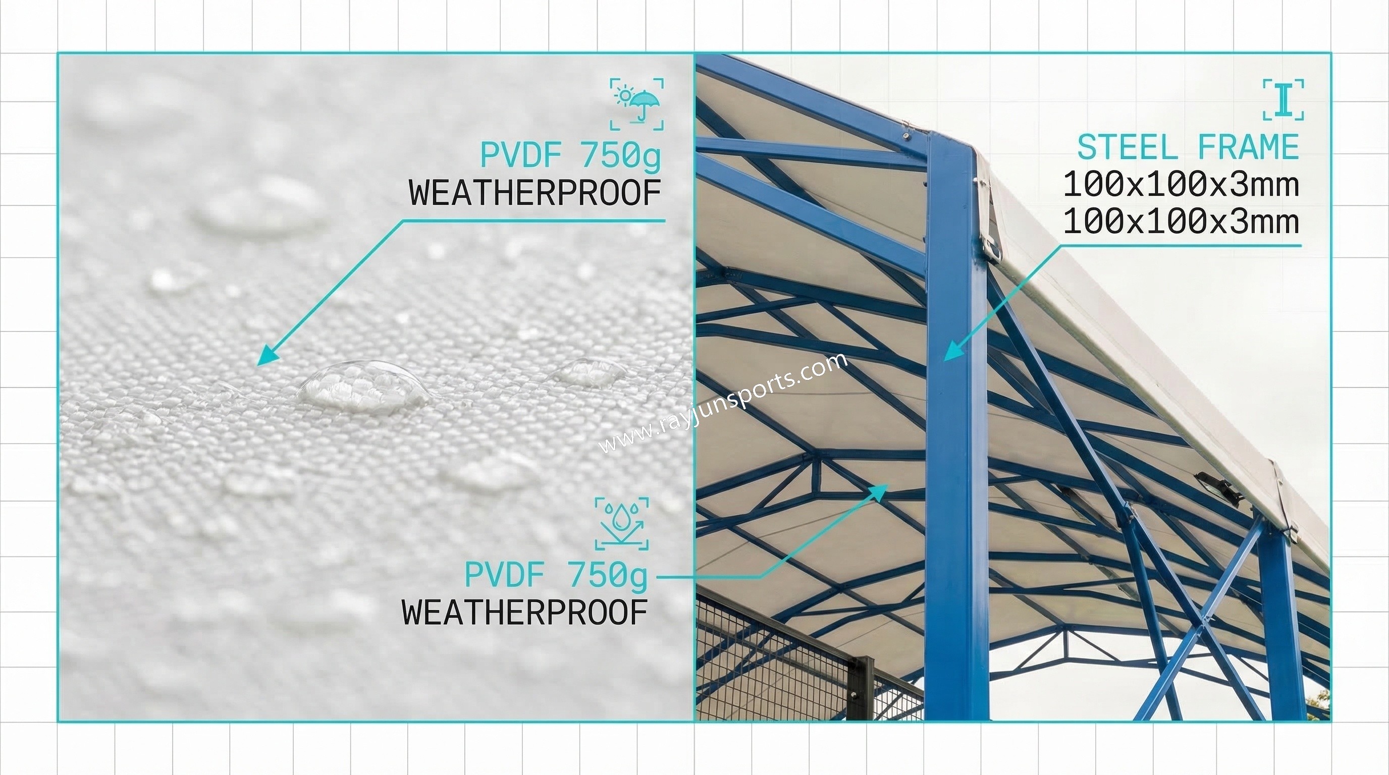 · Quick Installation and Disassembly: By installing aluminum alloy slots on the steel framework, the canopy fabric can be easily inserted, making the installation and disassembly process much quicker and simpler. This feature significantly reduces installation time and technical difficulty compared to traditional steel roof structures that require welding or more complex assembly.